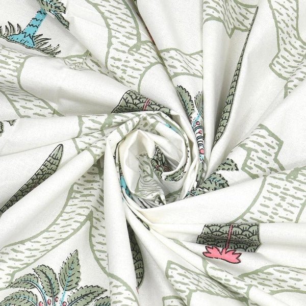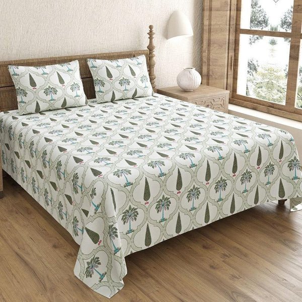 Tulip 250 TC 100% Cotton Printed King Size Bedsheet With 2 Pillow Covers,Aqua Green White.